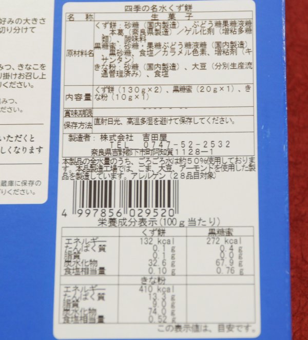 義経千本桜『吉野山』ゆかりの地・吉野より、吉田屋「四季の名水くず餅(1個)」。