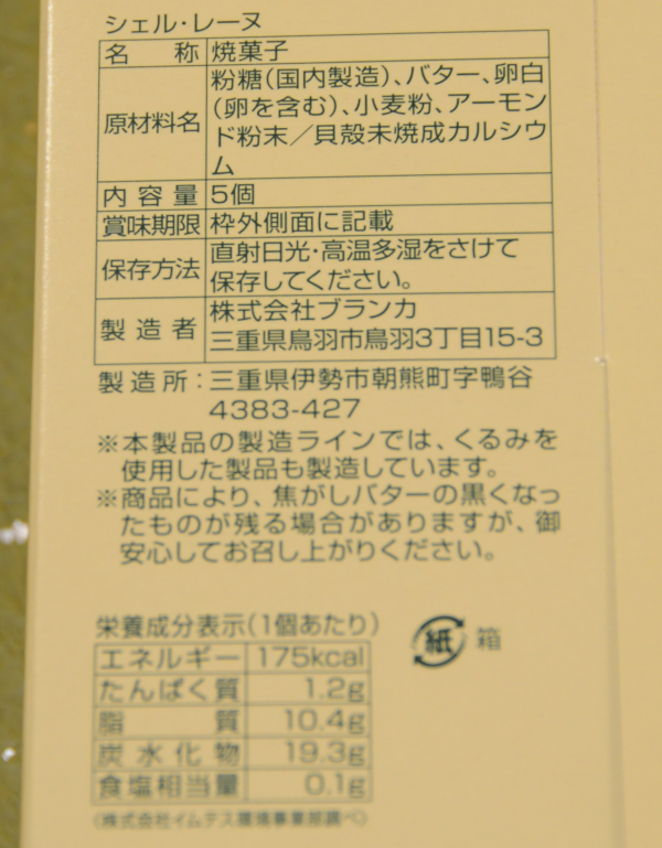 夜の部『歌舞伎絶対続魂(ショウ・マスト・ゴー・オン)』ゆかりの地・伊勢より、ブランク「シェル・レーヌ(5個入)」。G7伊勢志摩サミットにてコーヒーブレイクにも選ばれたマドレーヌです。