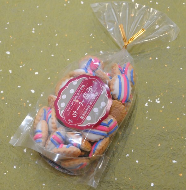 滋賀・多賀大社の名物「糸切餅」をモチーフにしたビスケット菓子。
