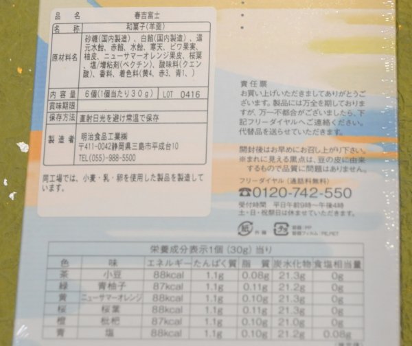 昼の部『當午歳歌舞伎賑(あたるうまどしかぶきのにぎわい)』より、明治食品工業の「春吉富士(はるきふじ)(6個入)」。