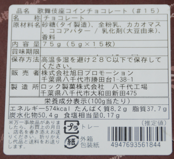 歌舞伎座コインチョコ1,000円(税込) 歌舞伎座地下2階 お土産処かおみせ