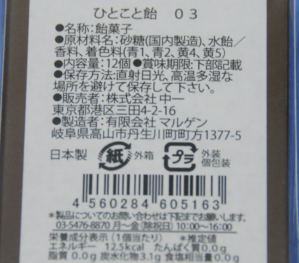 ひとこと飴 430円(税込) 歌舞伎座地下2階 はなみち