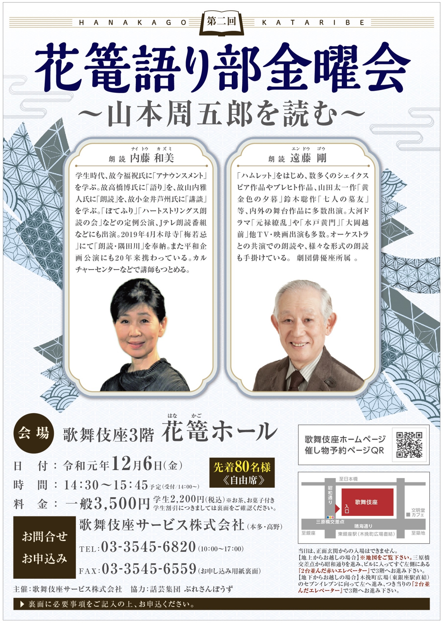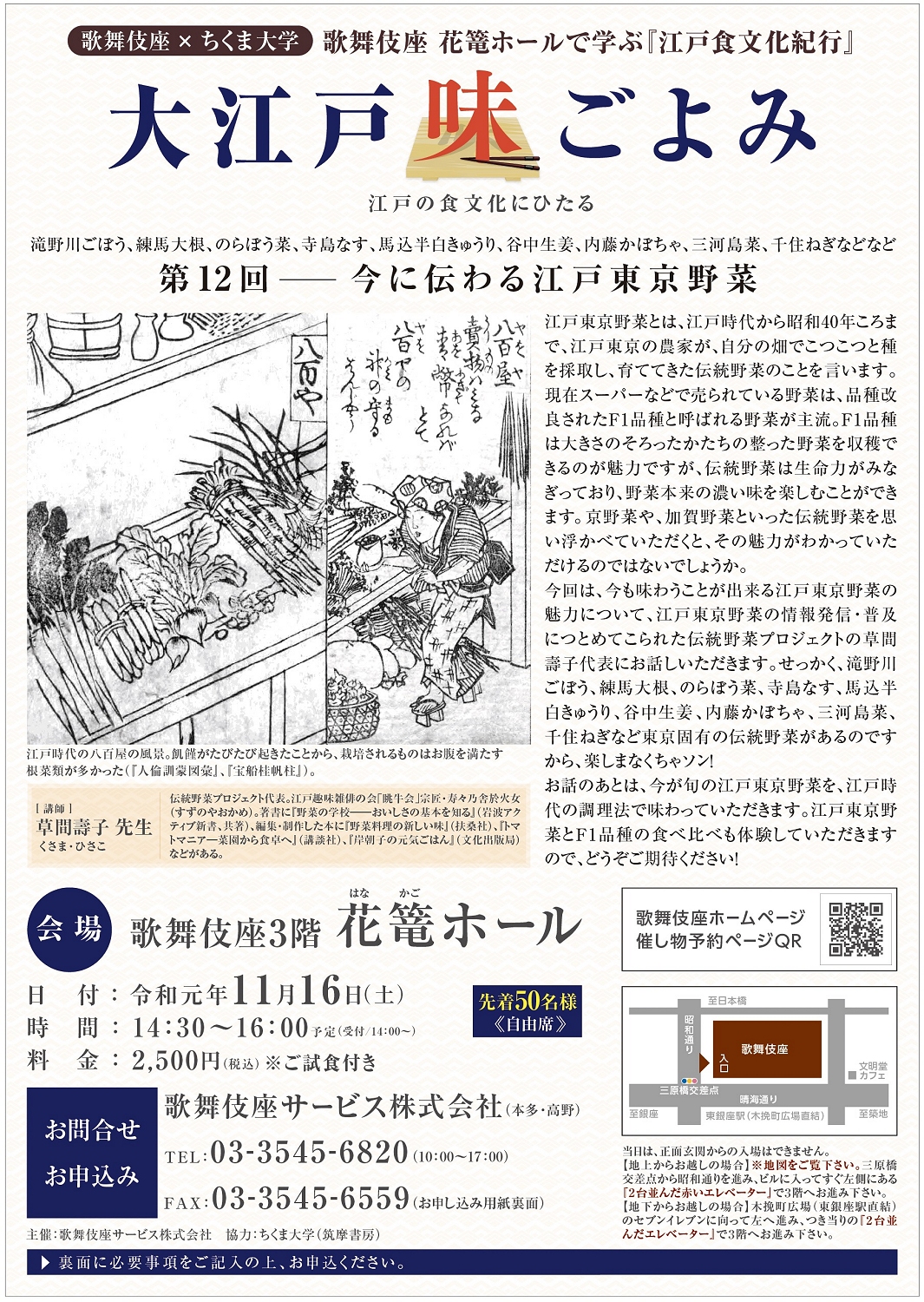 ※ 当日は開演の30分前に歌舞伎座3階お食事処「花篭」にご集合願います。入場方法は下記地図参照ください。